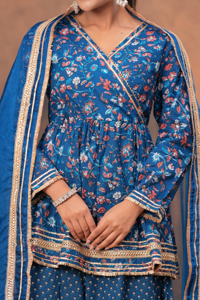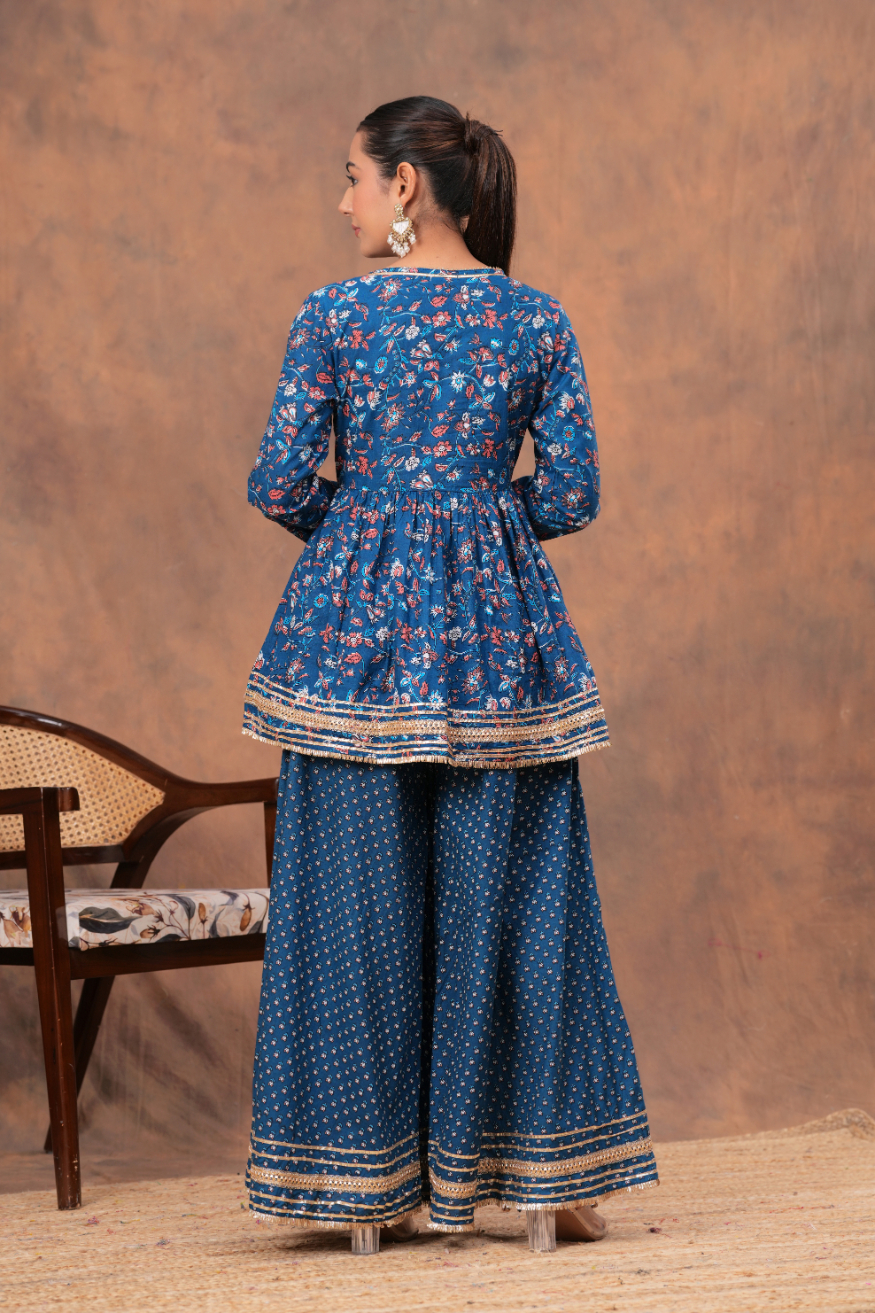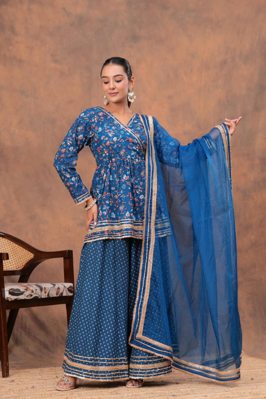 Key Features of Blue V-Neck Kurta Palazzo Set:
