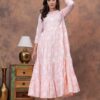 The Kamee Peach Cotton Floral Dress offers a perfect blend of style and comfort. This stunning dress features a delicate floral print set against a soft peach background, making it an ideal addition to your spring and summer wardrobe. Made from 100% pure cotton, it promises breathability and softness, keeping you comfortable throughout the day.