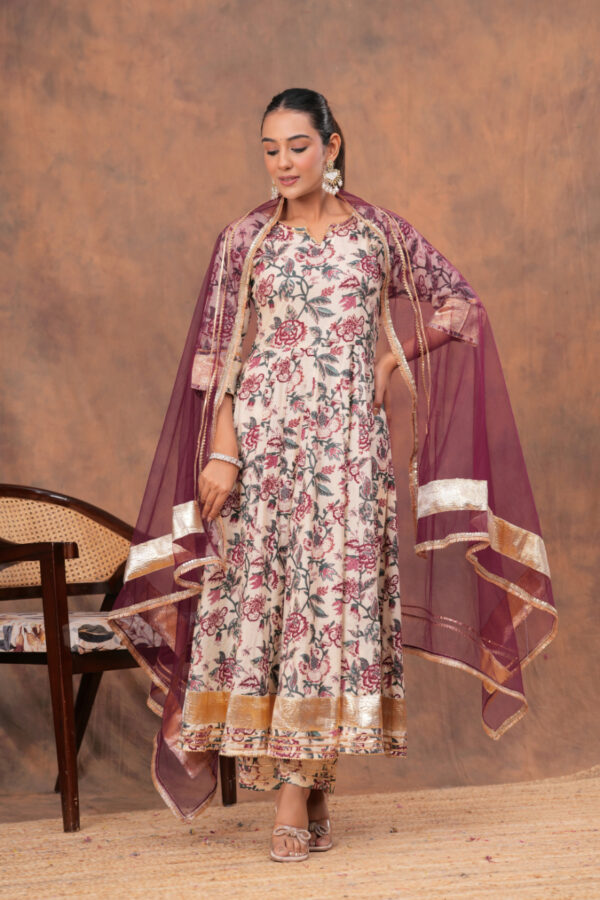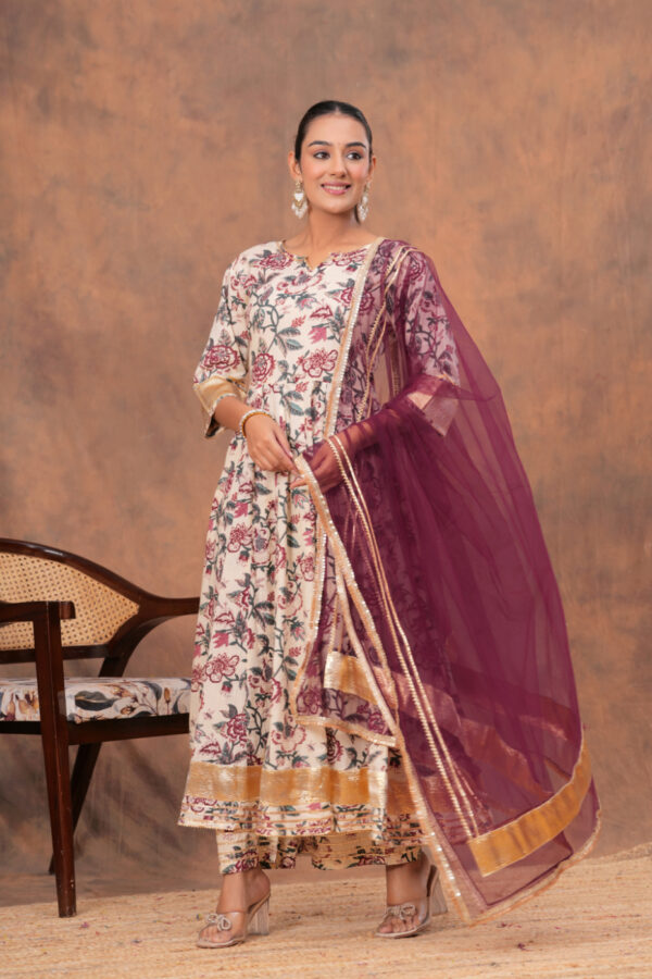 Complete Set: Comes with matching palazzo pants and dupatta, creating a cohesive look.