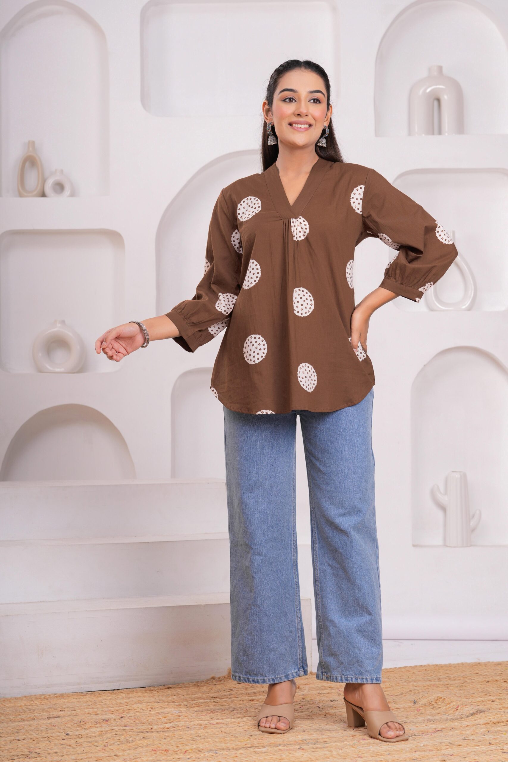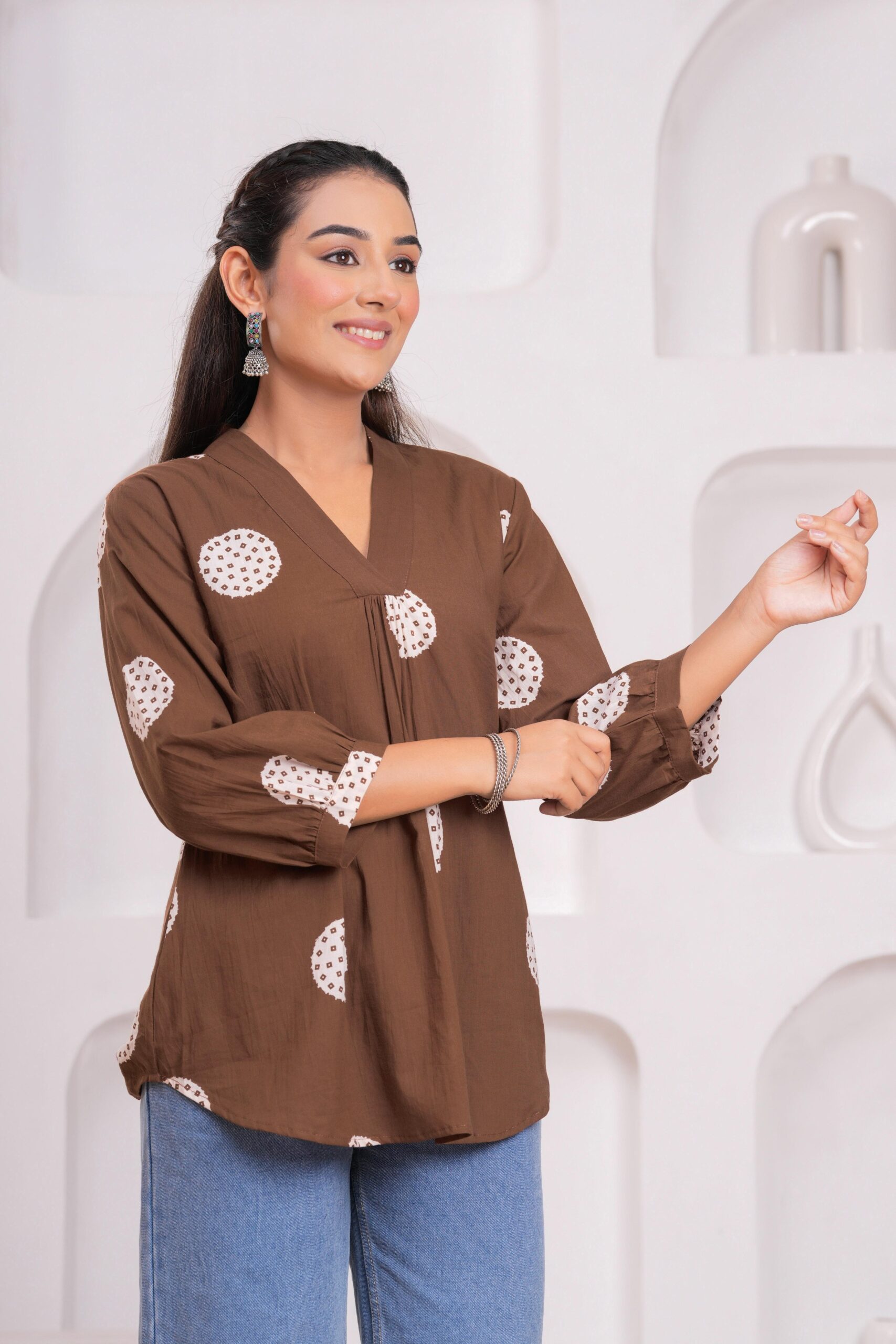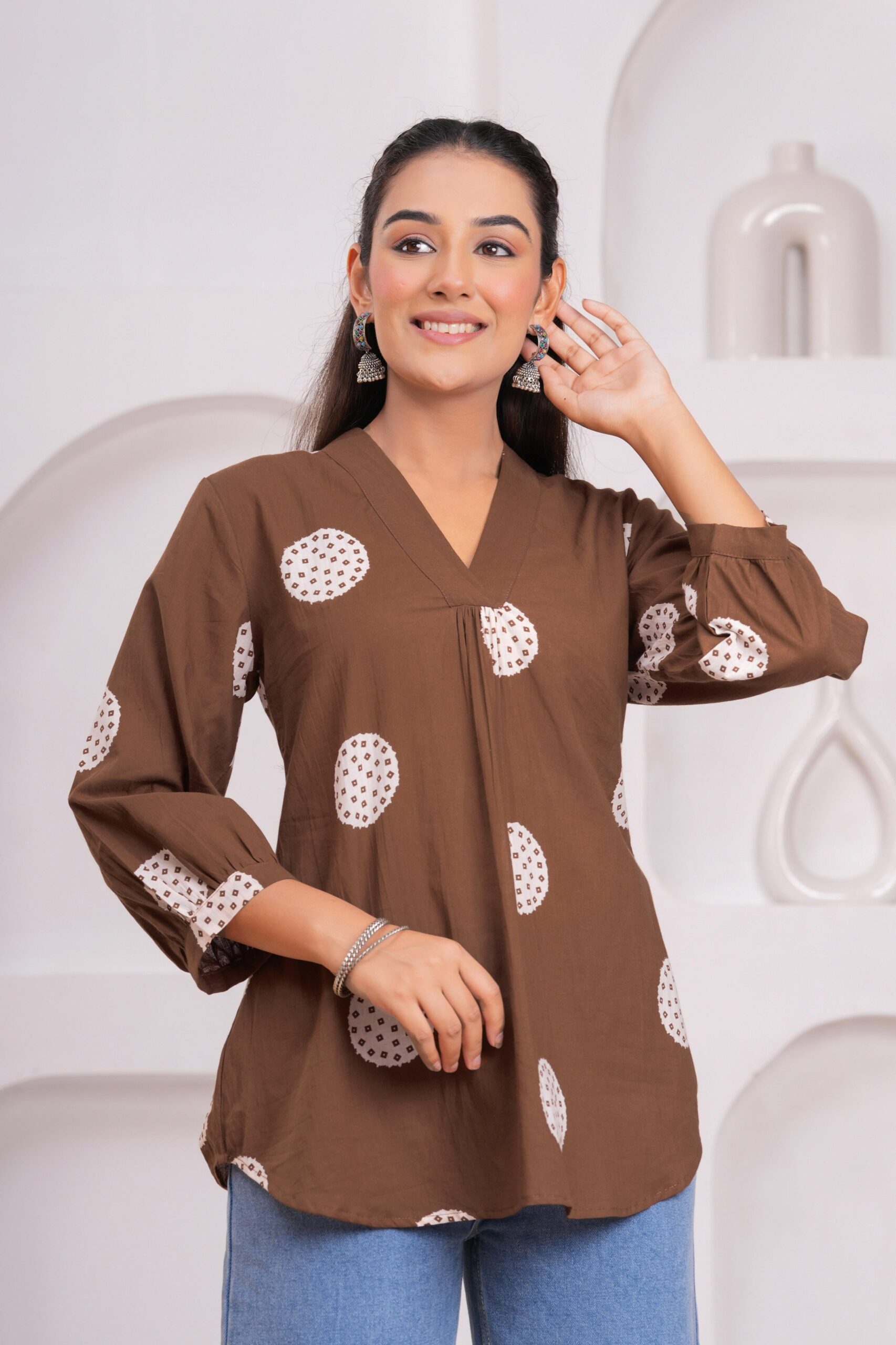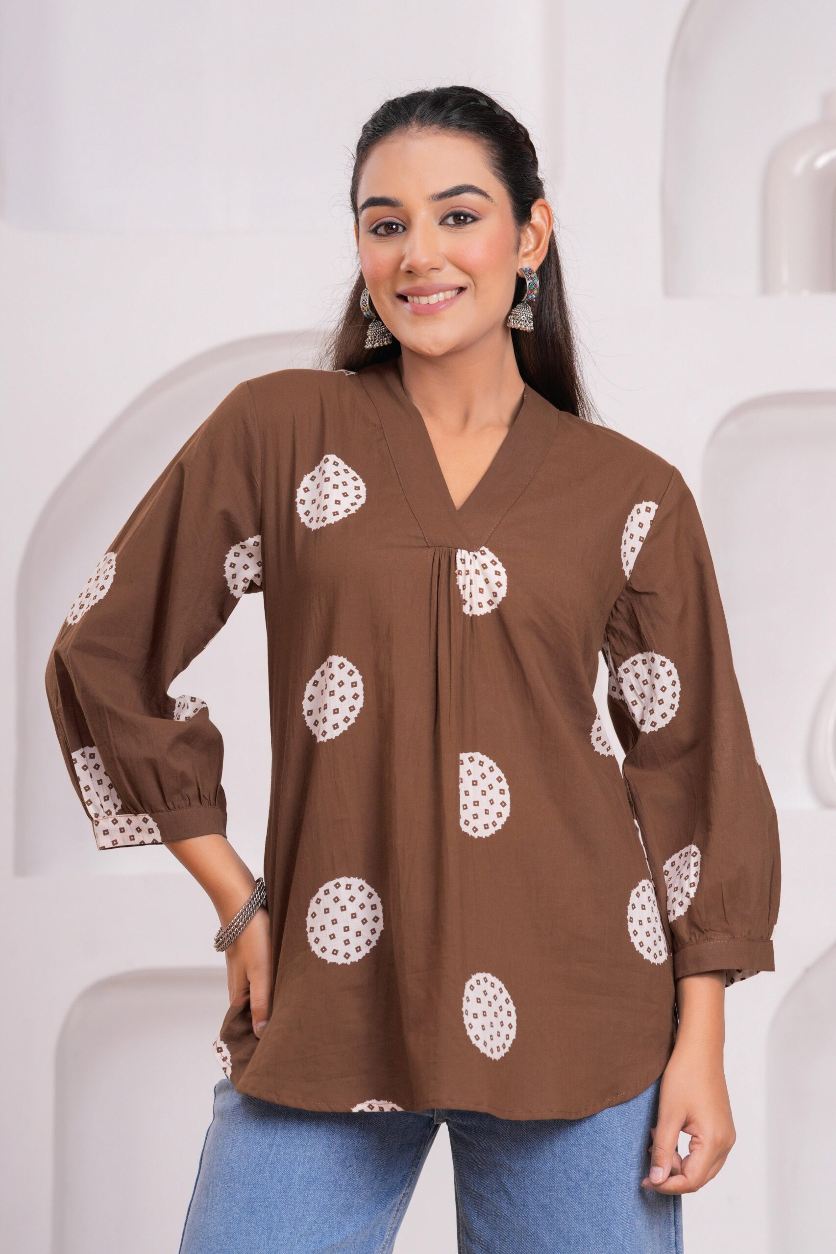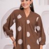 The Kamee V-Neck Kurti in brown is a stunning addition to any woman’s wardrobe. Made with 100% pure cotton, this kurti offers unmatched comfort and breathability for all-day wear. The rich brown color complements various skin tones, while the V-neck design adds a touch of sophistication and elegance.
