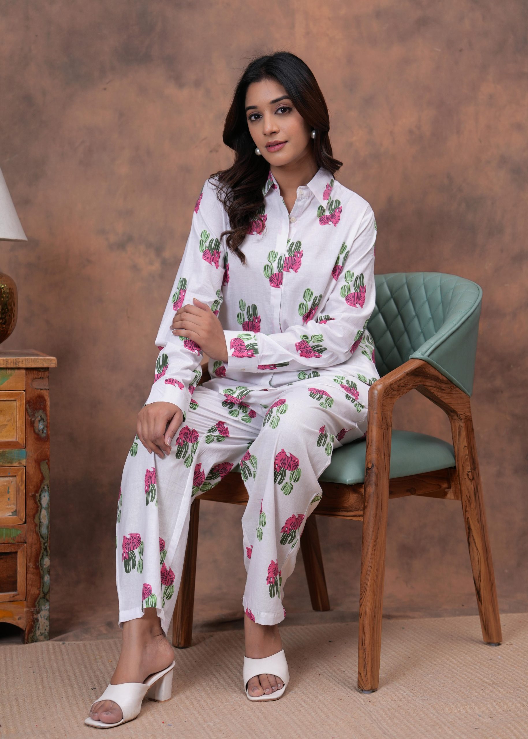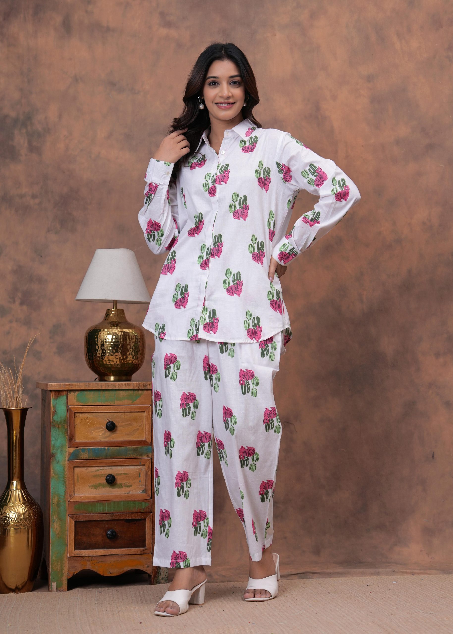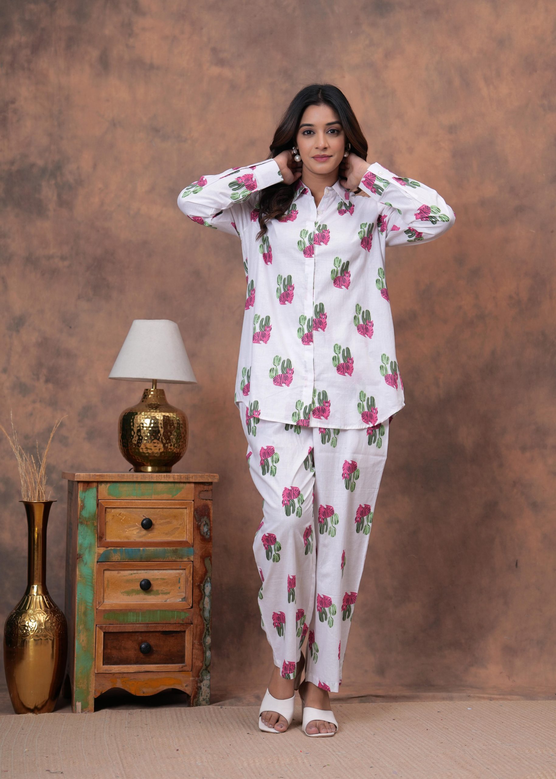 Kamee Women Pure Cotton Pink Shirt & Trouser Co-Ords