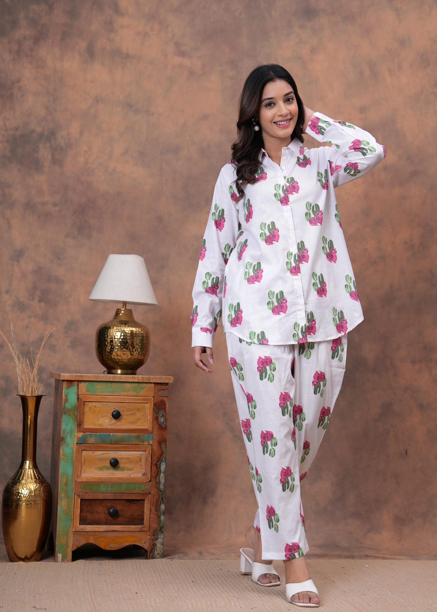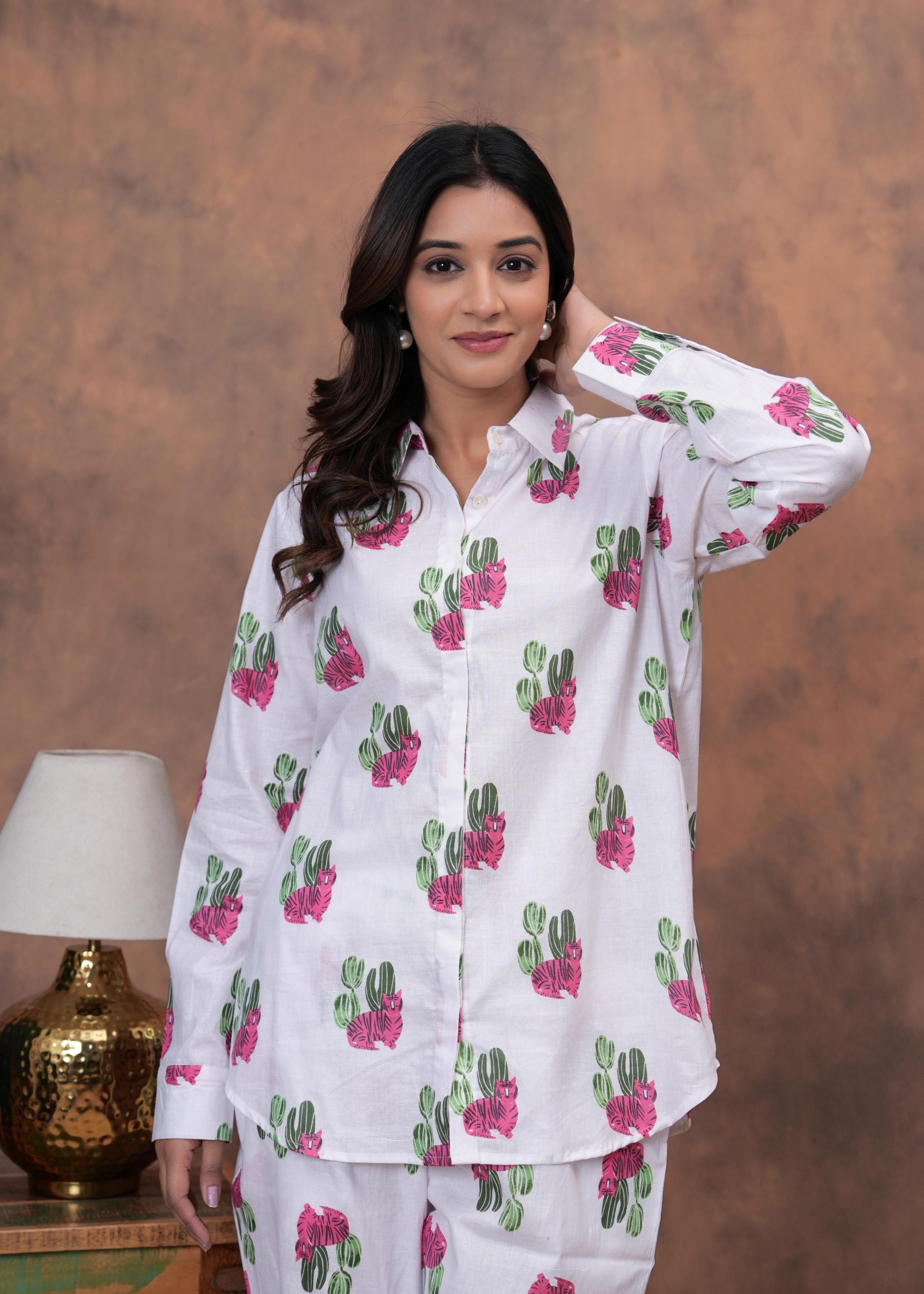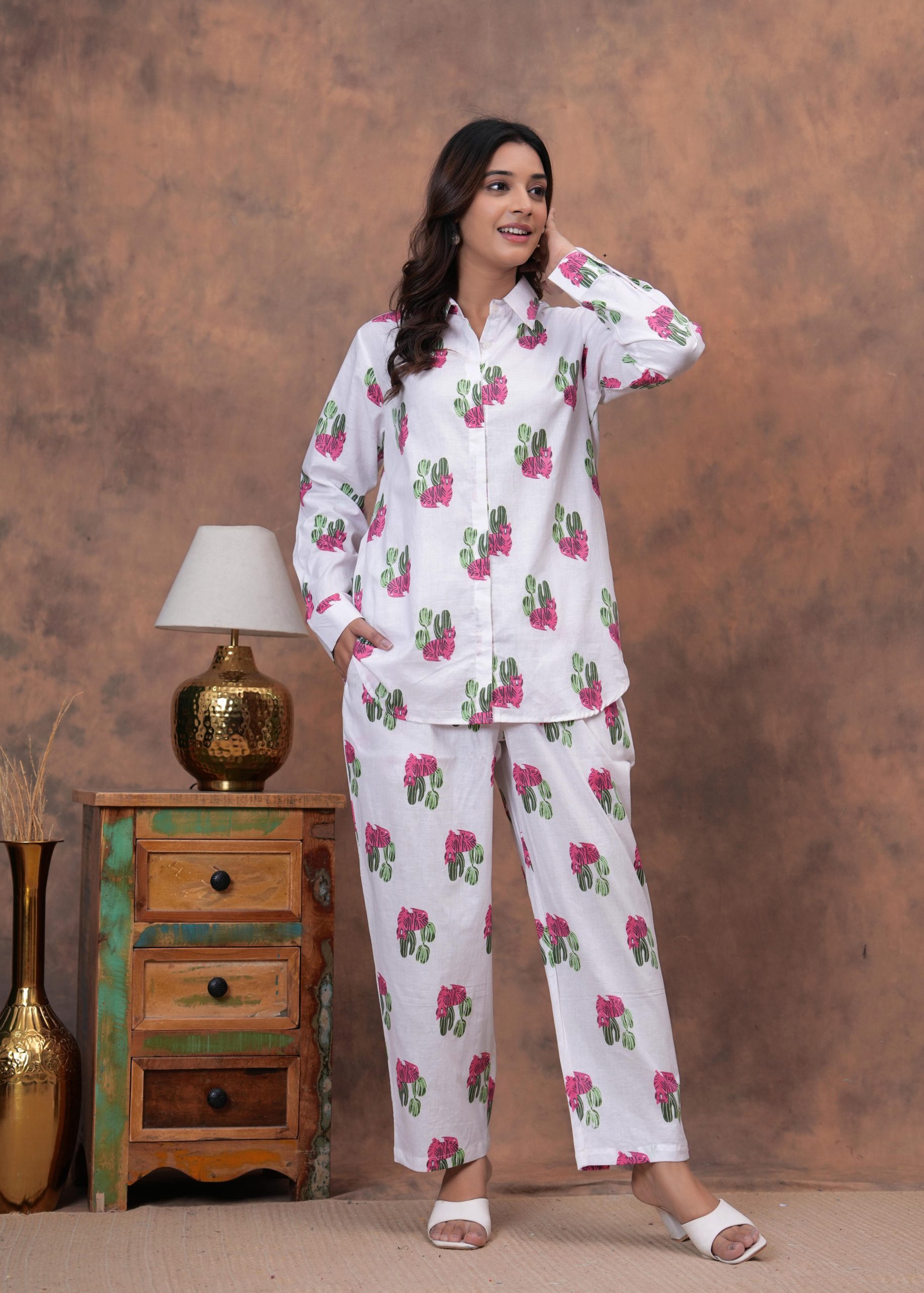 Kamee Women Pure Cotton Pink Shirt & Trouser Co-Ords
