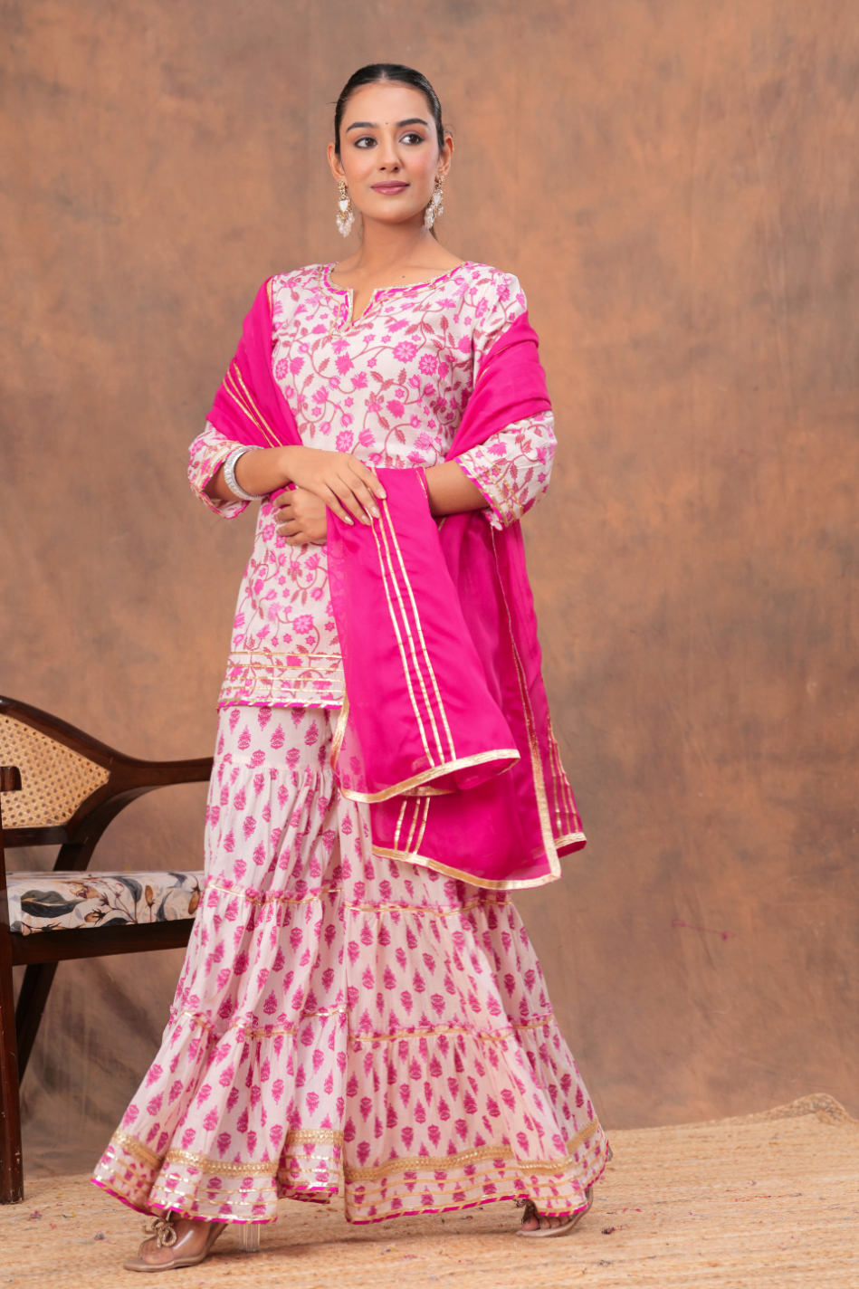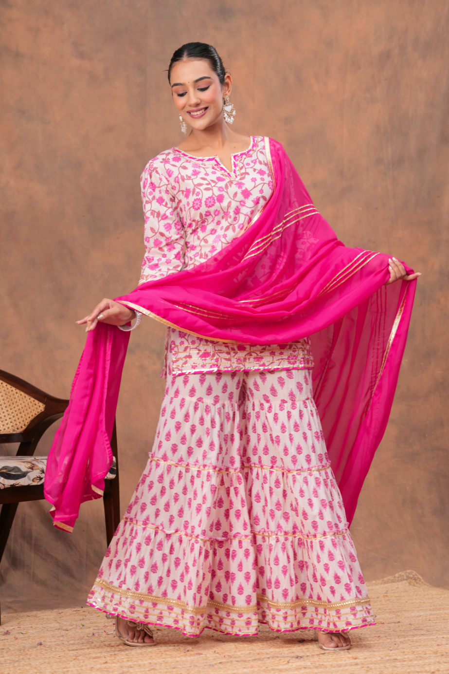 Matching Palazzo Pants & Dupatta: The palazzo pants offer comfort and freedom of movement, while the dupatta adds a final touch of elegance.