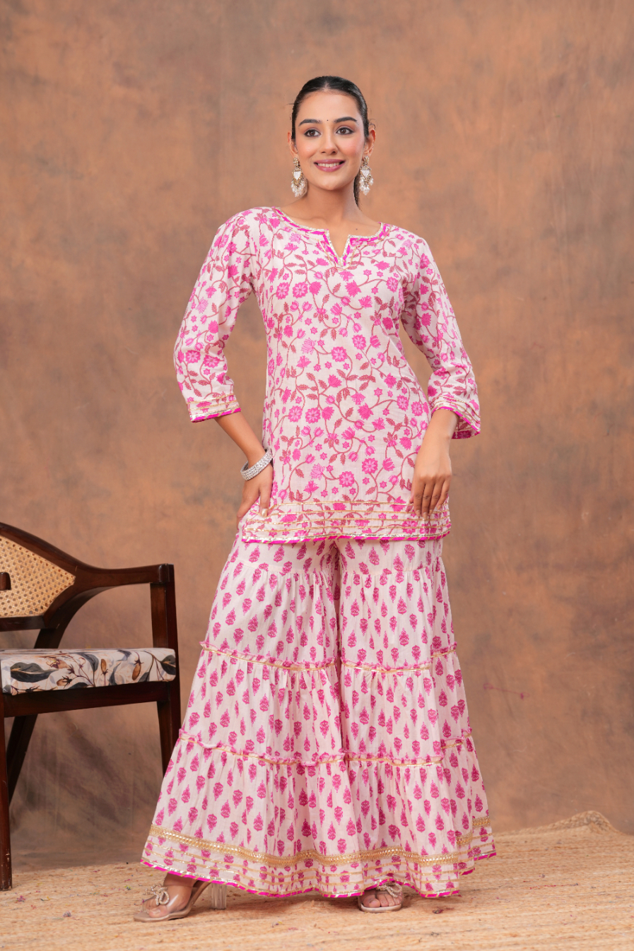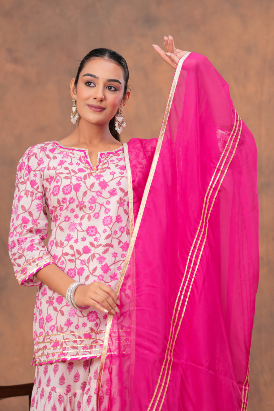 This Pink V-Neck Kurta Palazzo set from Kamee is perfect for those who value both style and comfort. Whether it's a casual outing, a festive celebration, or a semi-formal event, this set will ensure you stand out with grace and ease.