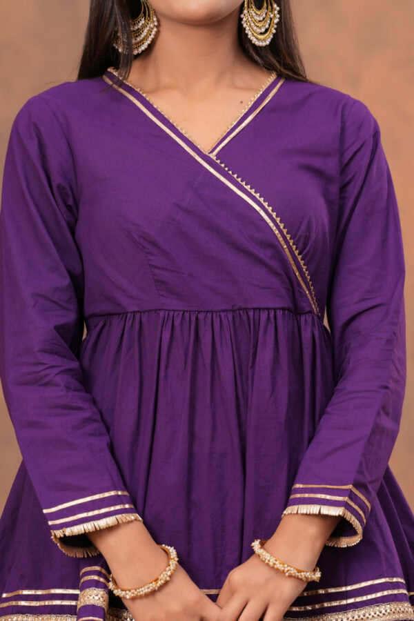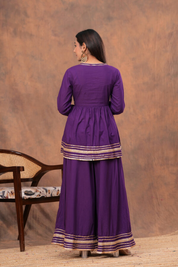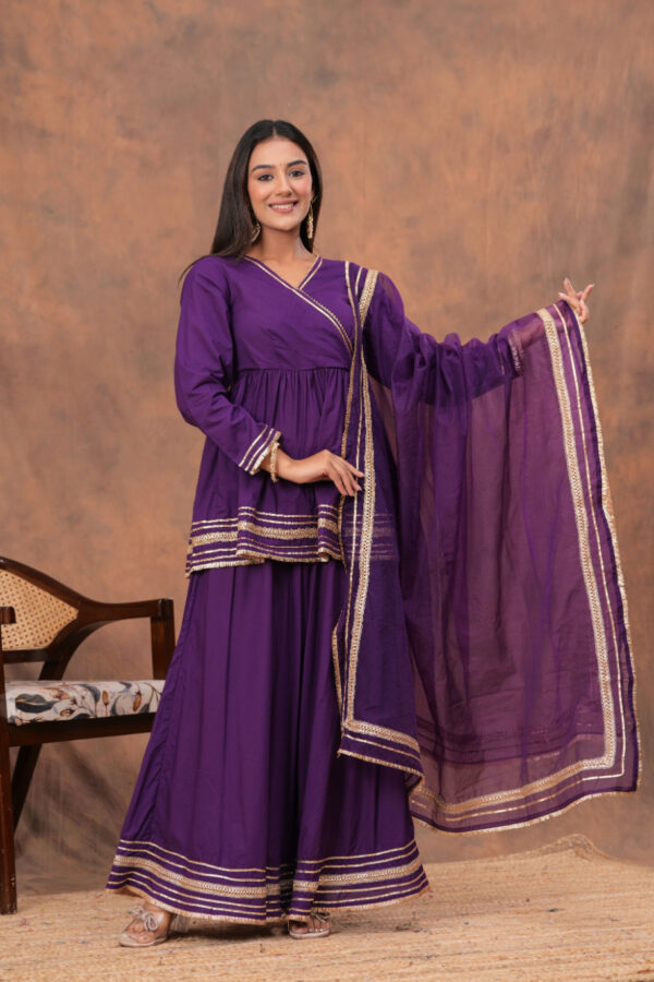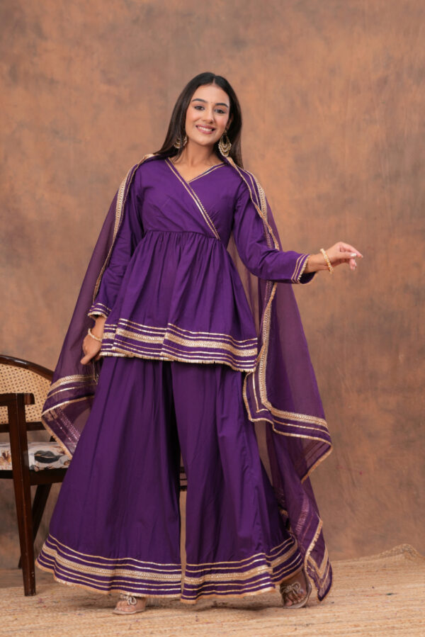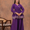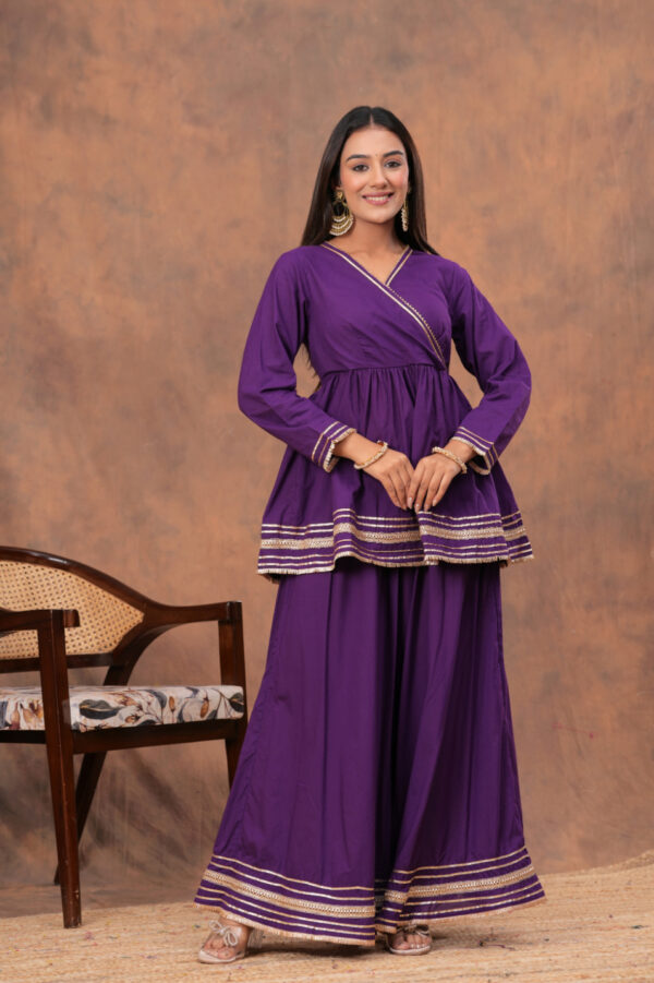 Key Features of Purple V-Neck Kurta Palazzo Set: