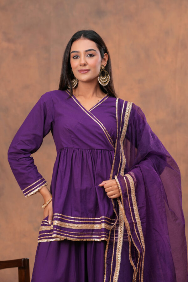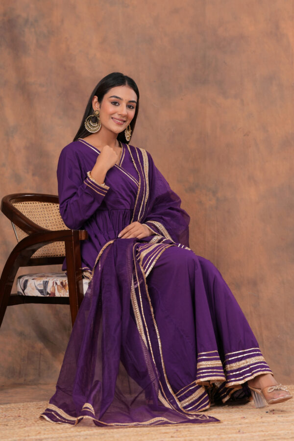 Kamee Purple V-Neck Kurta Palazzo Set with Dupatta – Cotton