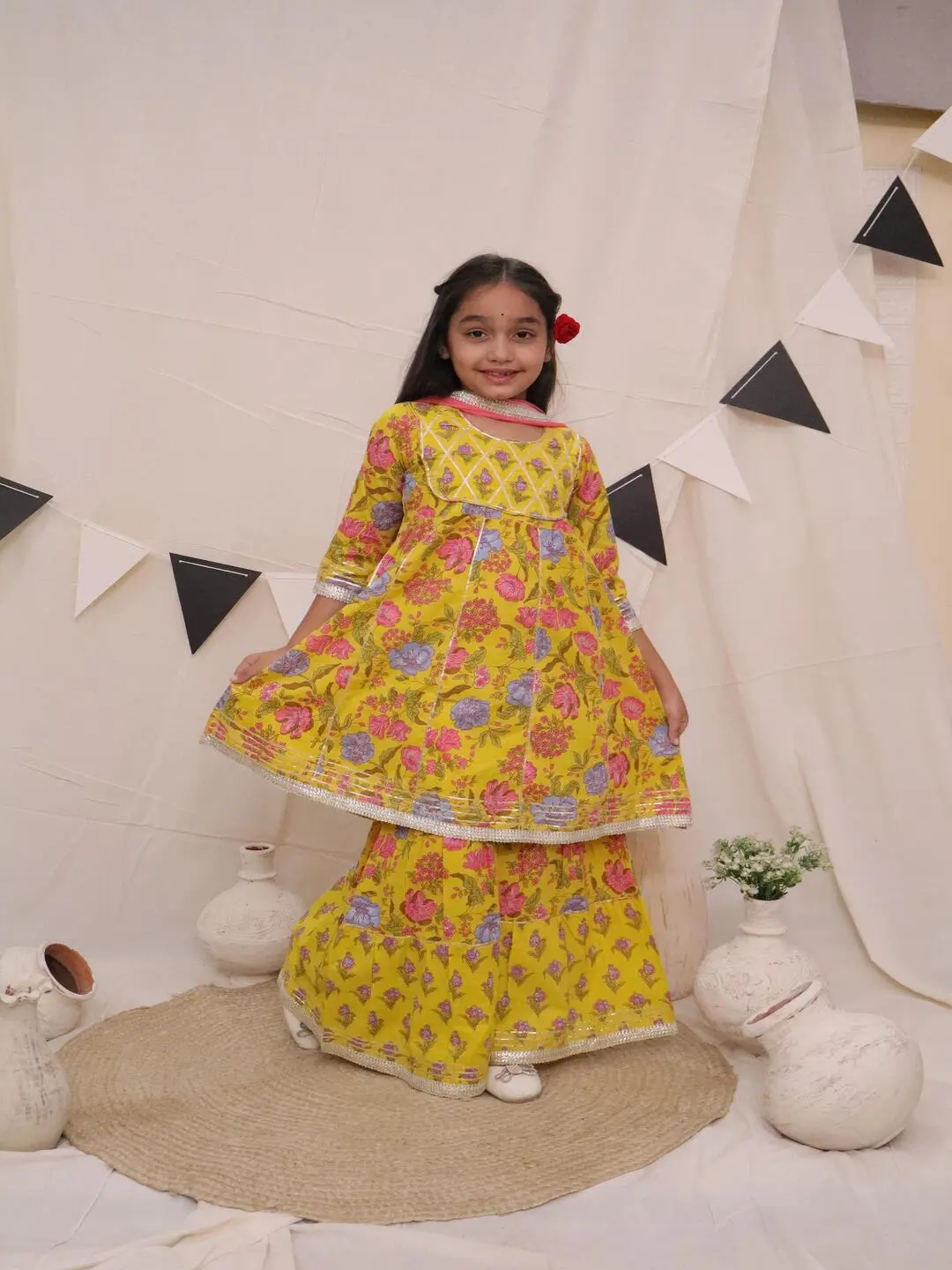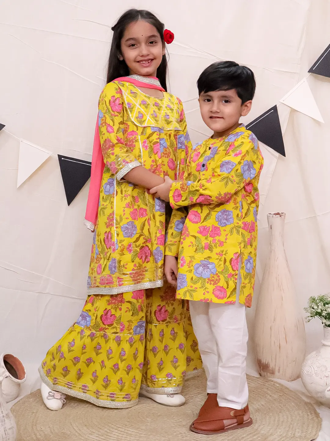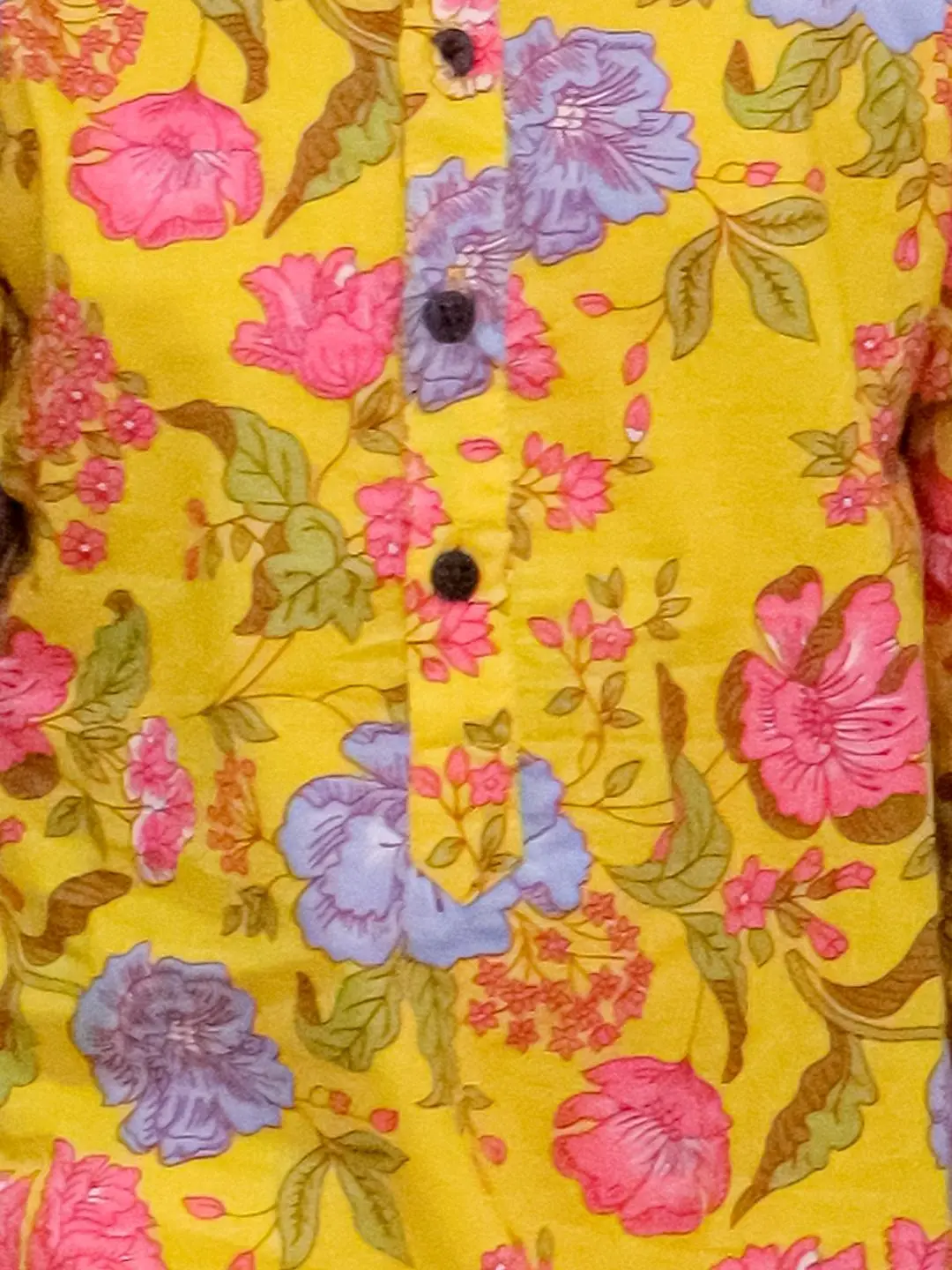 Kamee Siblings Yellow Floral Printed Pure Cotton Co-Ord Set Comfortable & Stylish