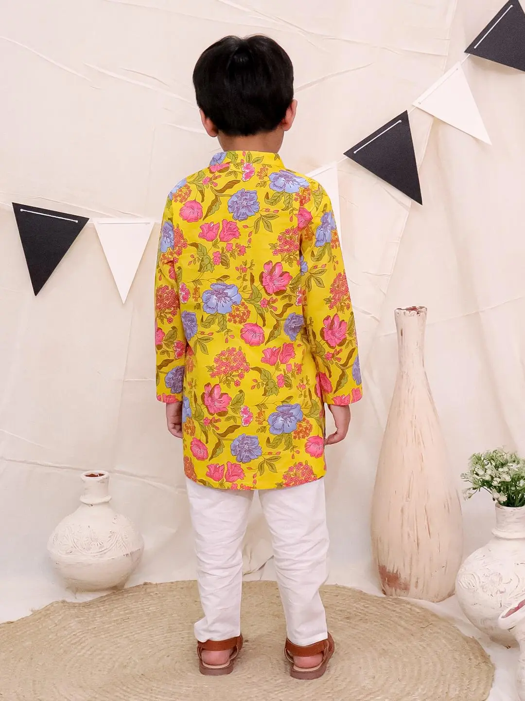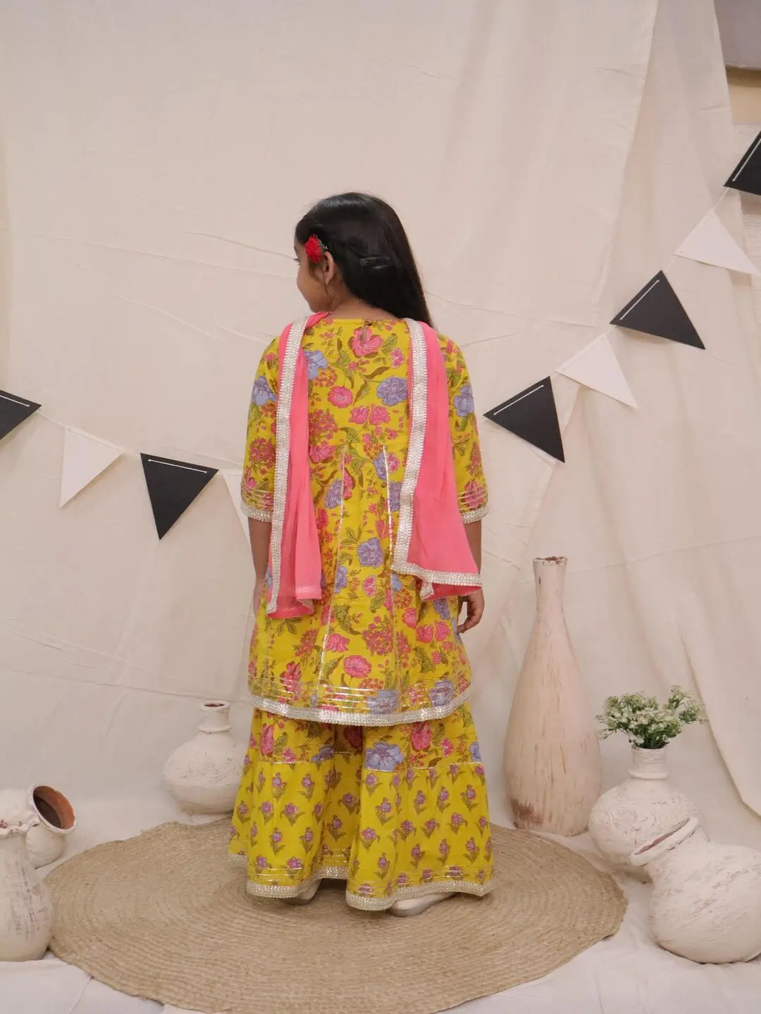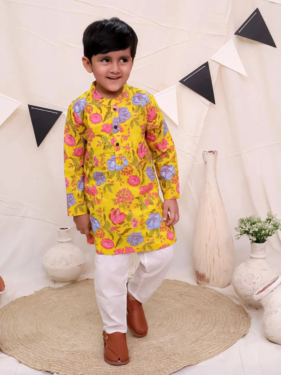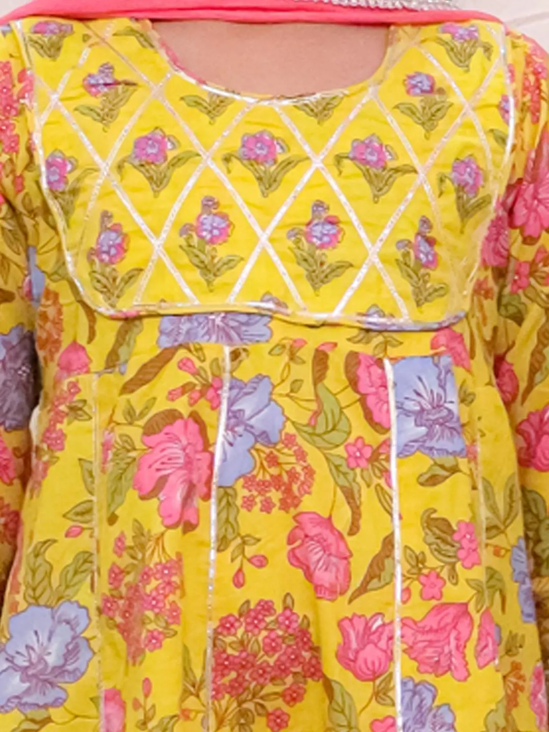 Kamee Siblings Yellow Floral Printed Pure Cotton Co-Ord Set Comfortable & Stylish