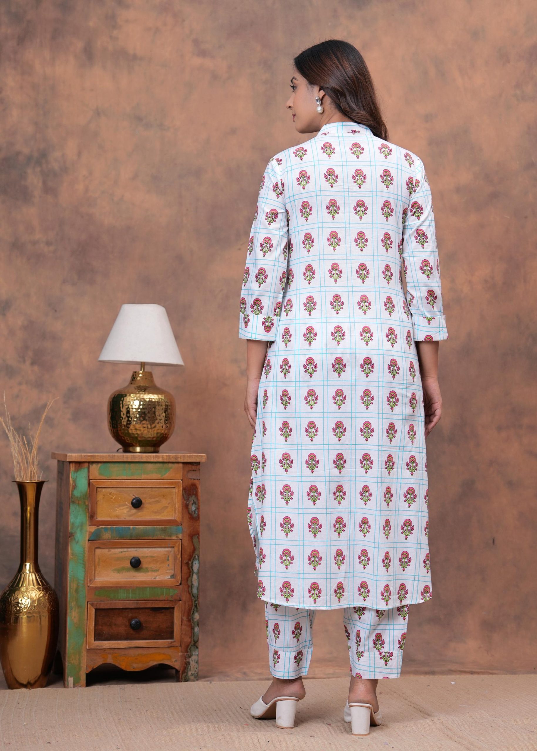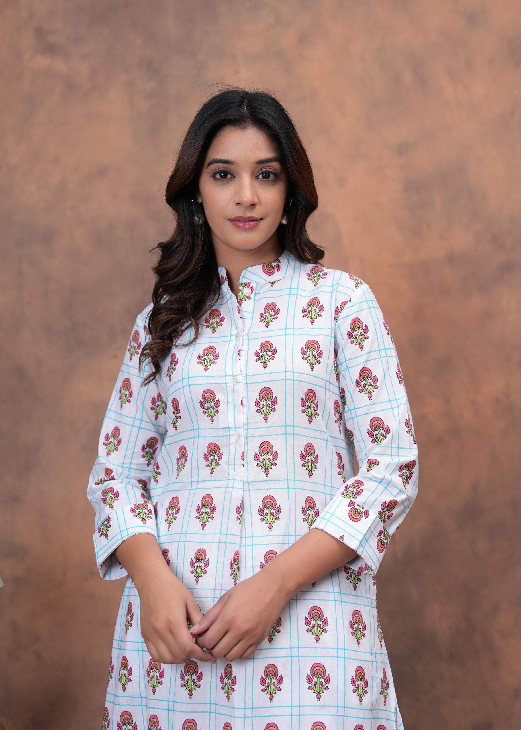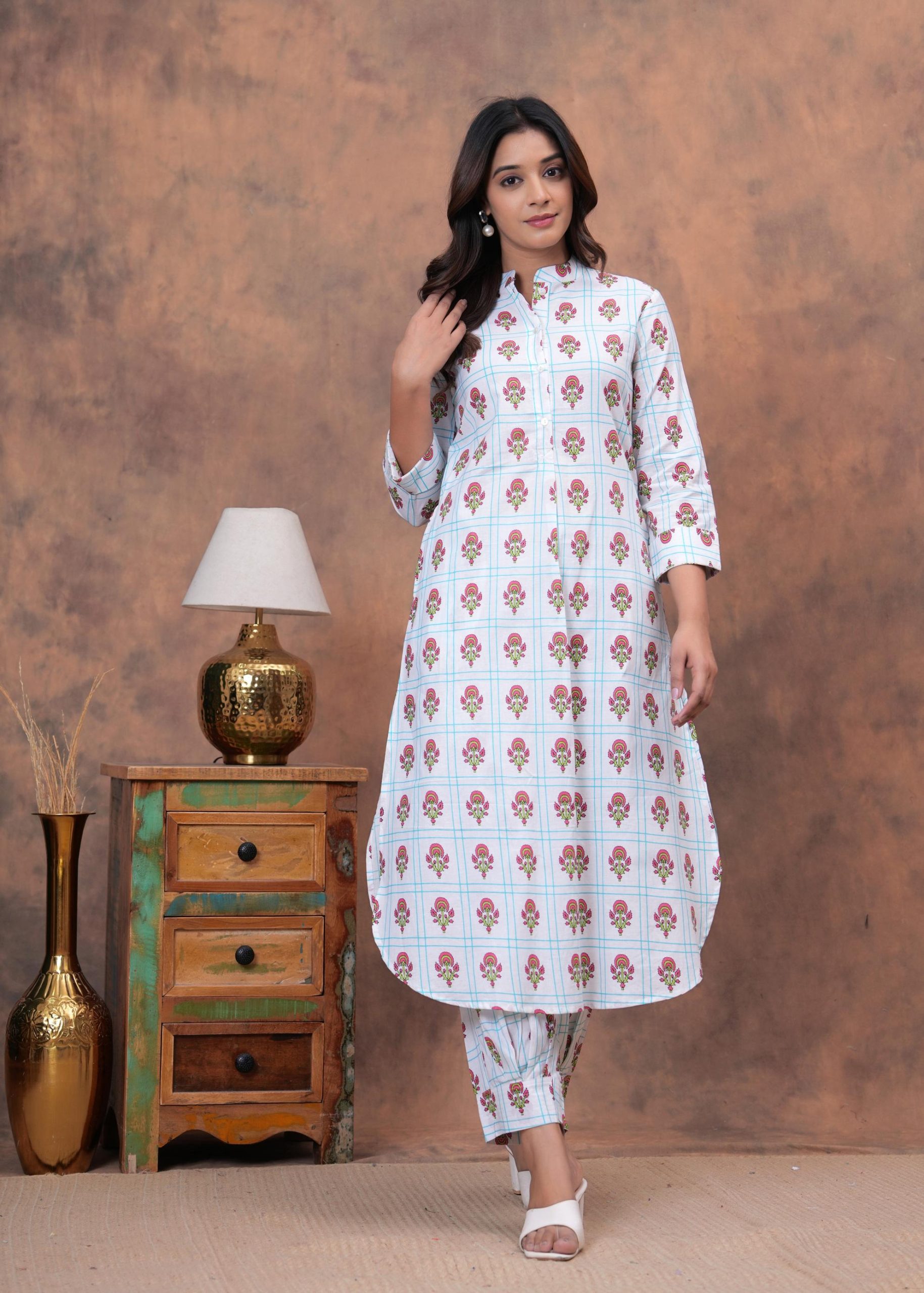 The Kamee Women Pure Cotton White Floral Co-Ord Set combines classic design with modern comfort, making it an ideal addition to any woman's wardrobe.